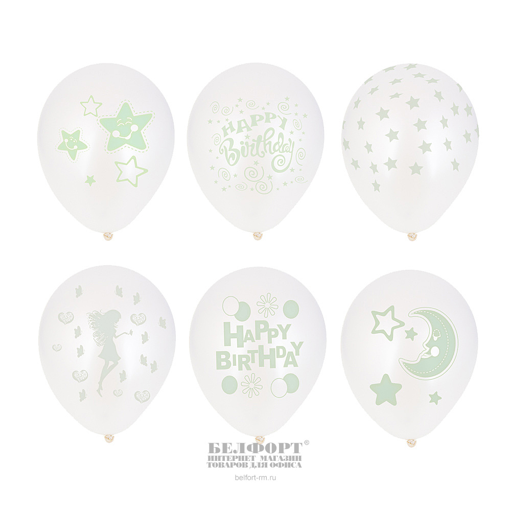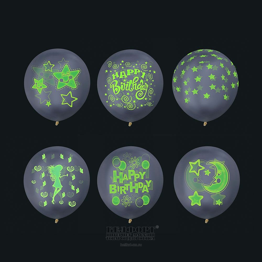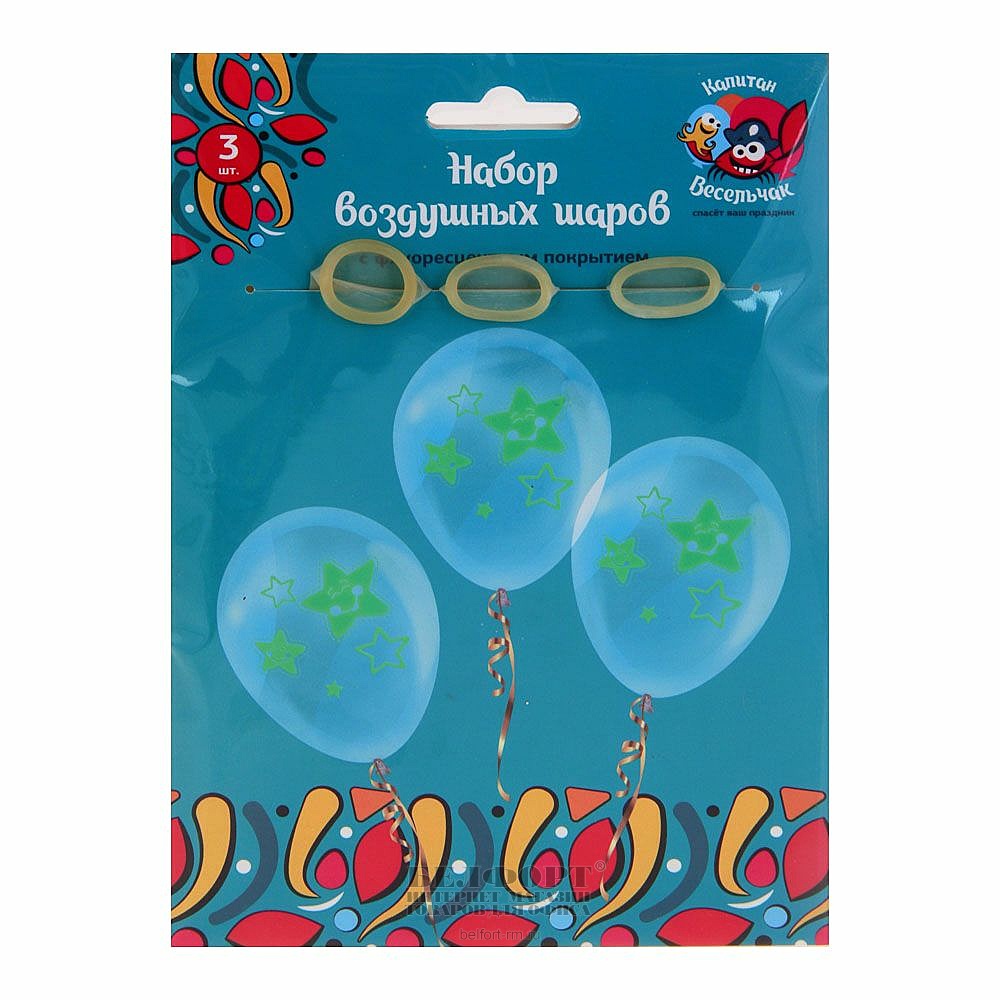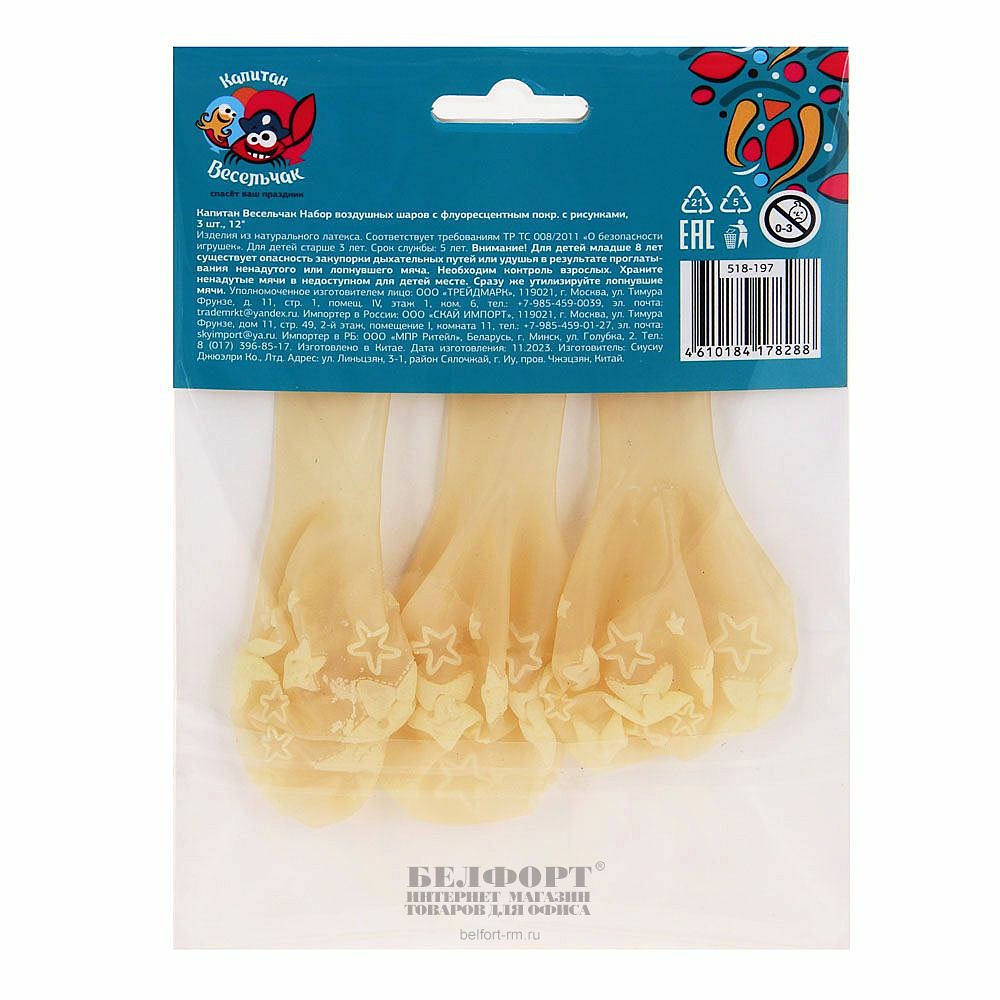 Набор воздушных шаров Капитан Весельчак, прозрачный, 12", 3шт, 6 дизайнов, с флуоресцентным покр. рисунка