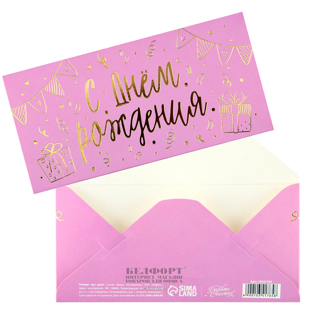 Конверт для денег "С днем рождения", 16,5см*8см, тиснение