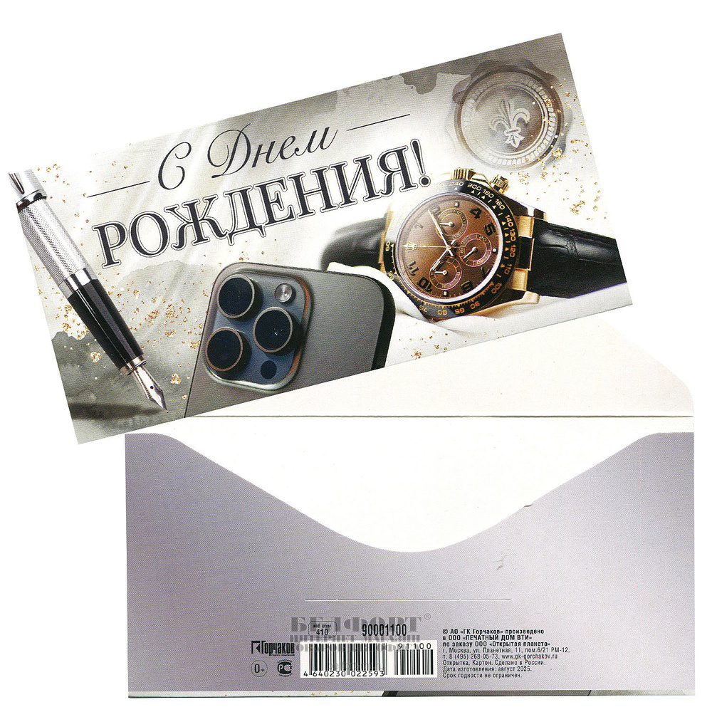 Добавить к сравнению264143Есть в наличии 10 шт.Конверт для денег "С Днем рождения!", 16,5см*8см, мужской, тиснение