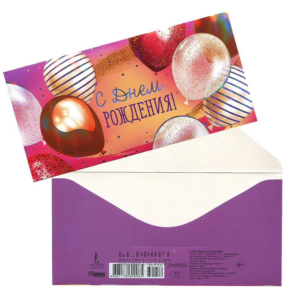 Конверт для денег "С Днем Рождения!", 16,7см*8,3см, шары