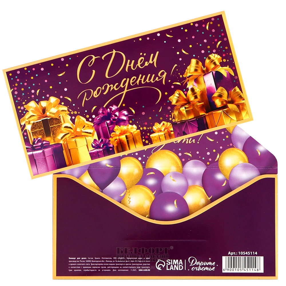 Добавить к сравнению261308Есть в наличии 4 шт.Конверт для денег "С Днем рождения!", 16,5см*8см, леденцы