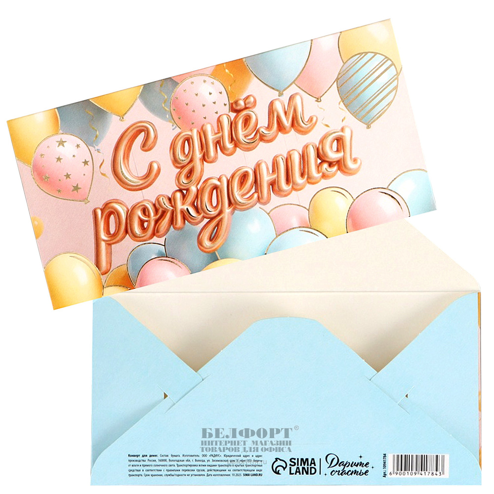 Добавить к сравнению264141Есть в наличии 9 шт.Конверт для денег "С Днем рождения!", 16,5см*8см, подарки и шарики