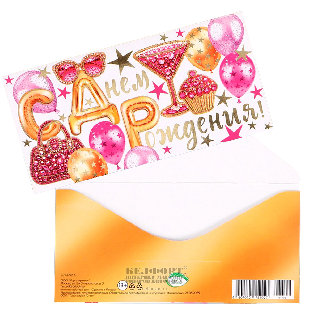 Добавить к сравнению242012Есть в наличии 1 шт.Конверт для денег "С Днем рождения! Самый лучший момент сейчас", 16,7см*8,5см, фольга