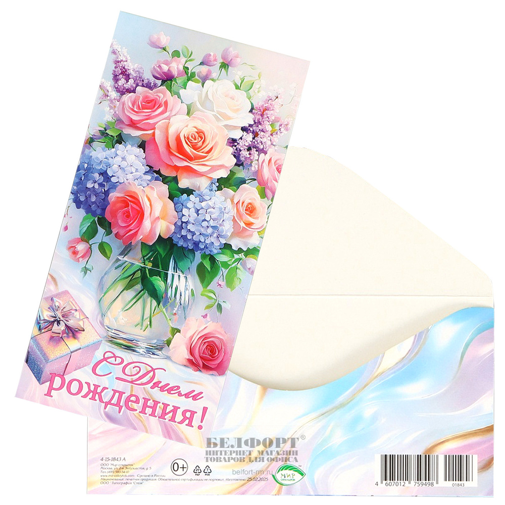 Добавить к сравнению262793Есть в наличии 3 шт.Конверт для денег "С Днем Рождения!", 16,5см*8см, розы