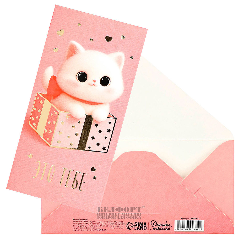Конверт для денег "Это тебе", 16,5см*8см, котик