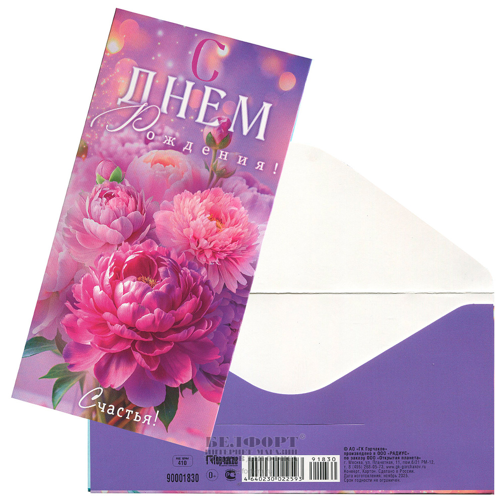 Конверт для денег "С Днем рождения!", 16,7см*8,2см, счастья