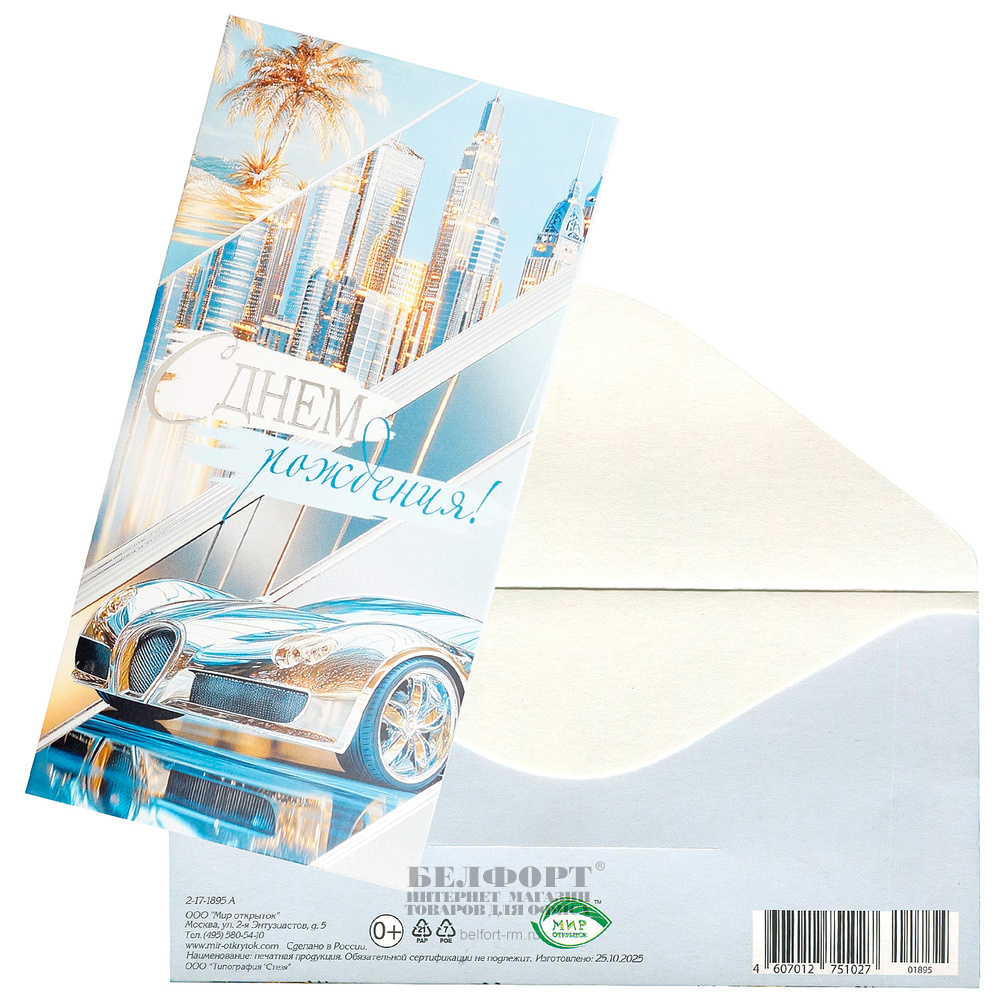 Конверт для денег "С Днем рождения!", 16,7см*8,3см, фольга, авто