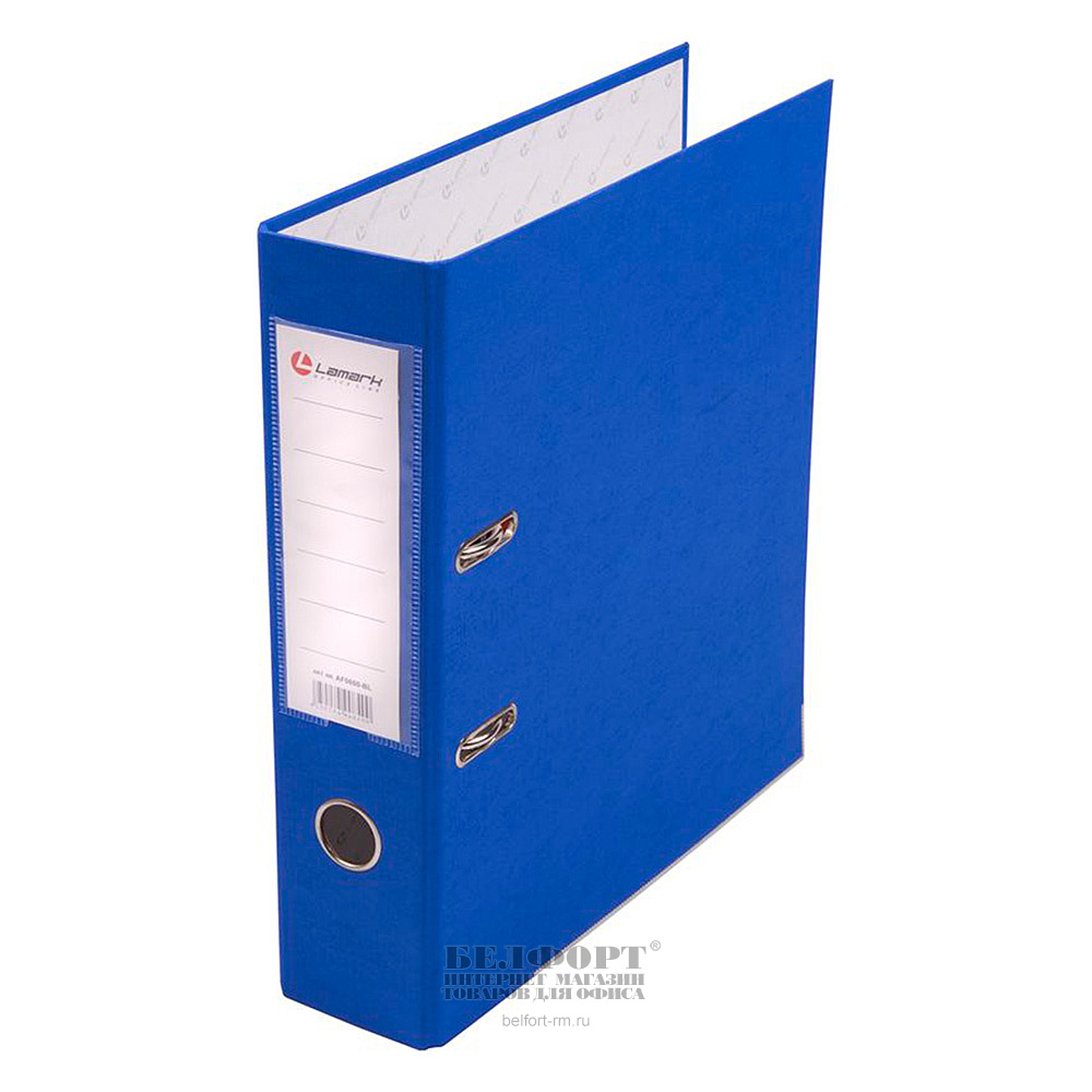 Папка-регистратор А4, арочный механизм, ширина корешка 80мм, полипропилен, синий, Lamark с карманом на корешке, внутреннее поле для записей, с метал. окантов