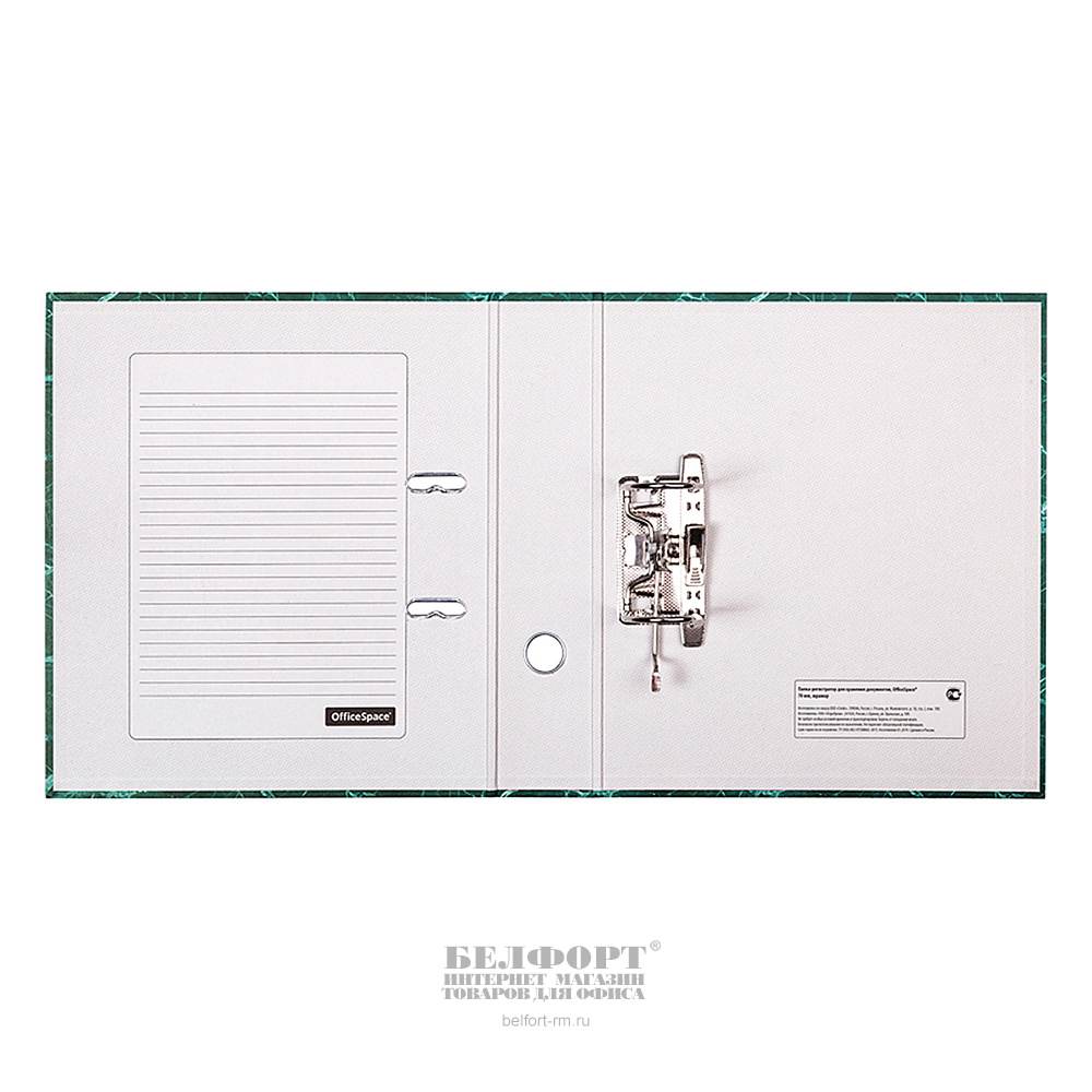 Папка-регистратор А4, арочный механизм, ширина корешка 70мм, картон, зеленая, под мрамор, OfficeSpace, внутреннее поле для записей