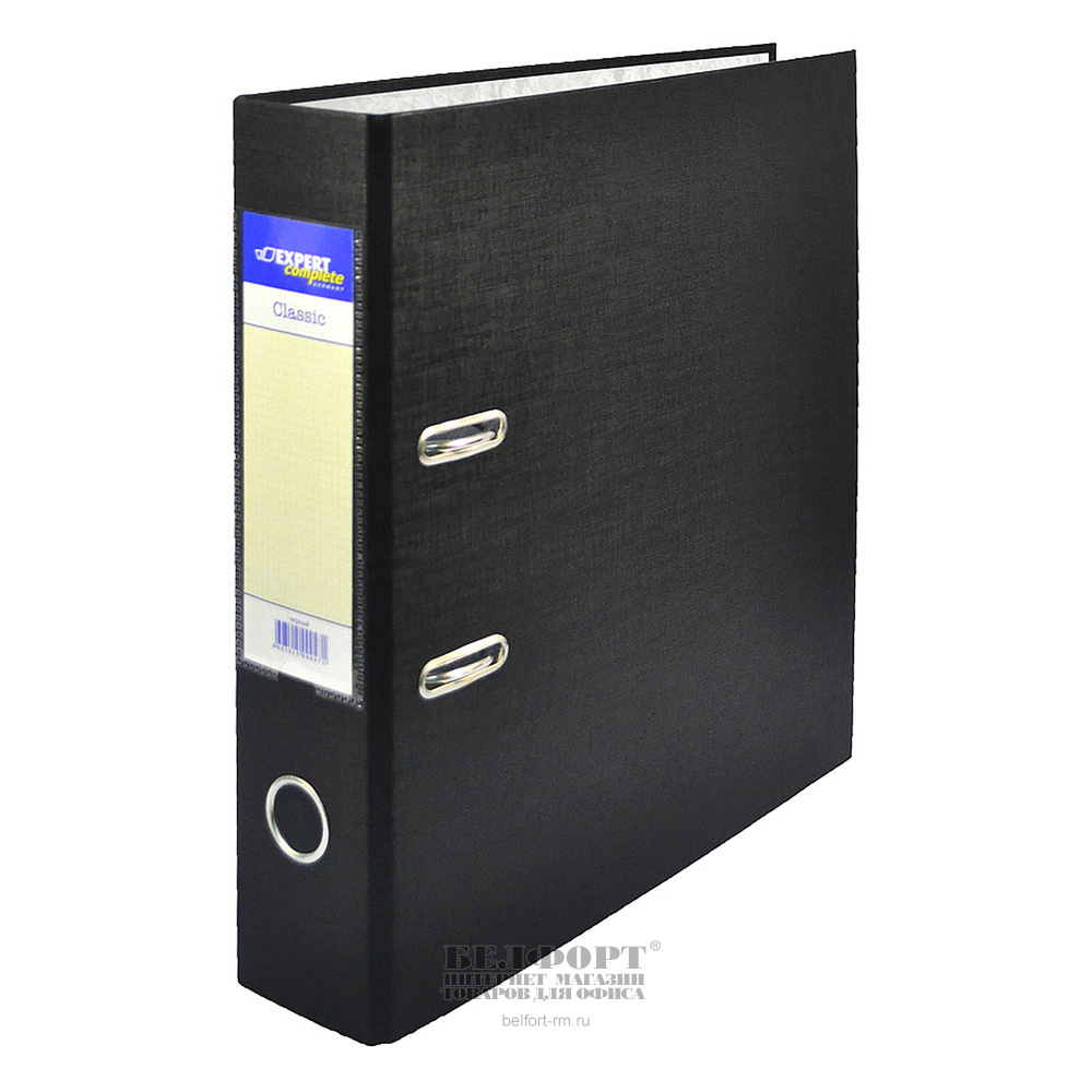 Папка-регистратор А4, арочный механизм, ширина корешка 75мм, ПВХ, черная, Expert Complete, "Classic" с карманом на корешке, внутреннее поле для записей