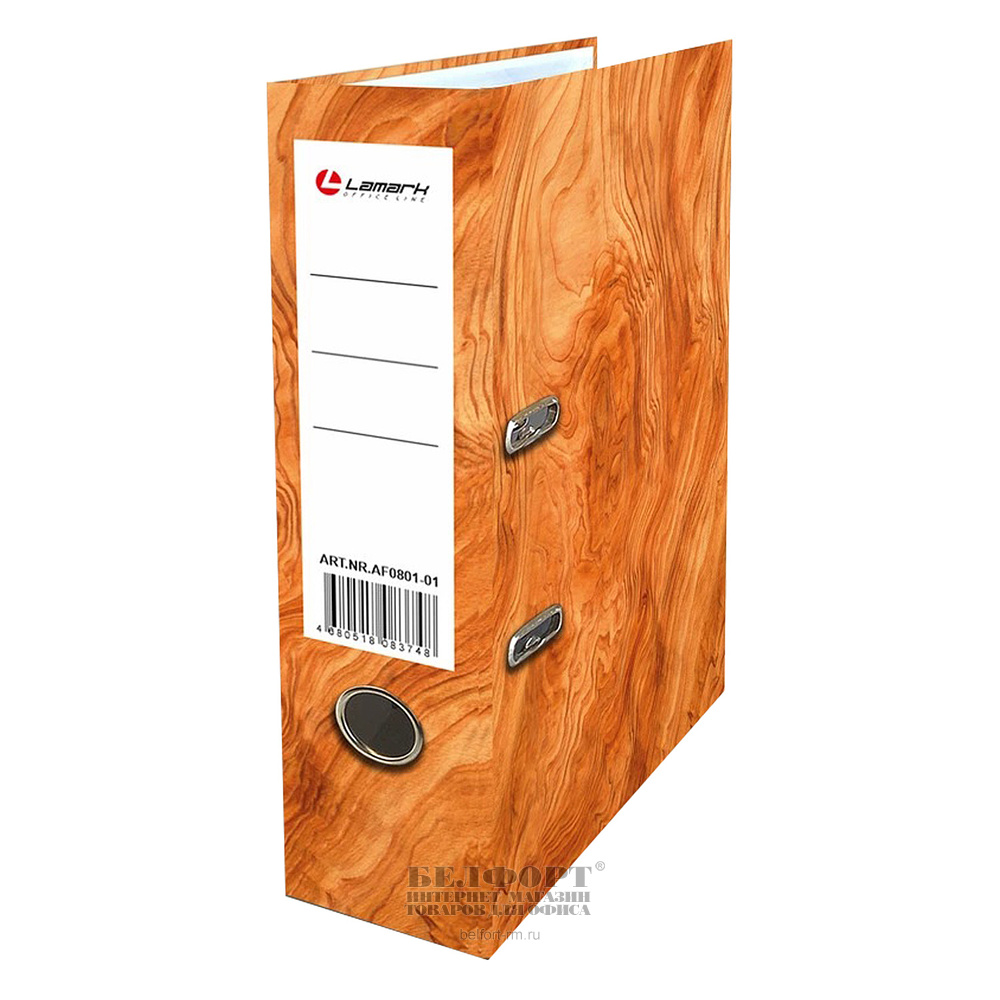 Папка-регистратор А4, арочный механизм, ширина корешка 75мм, картон ламинированный, светло-коричневая, Lamark, "Дерево", внутреннее поле для записей