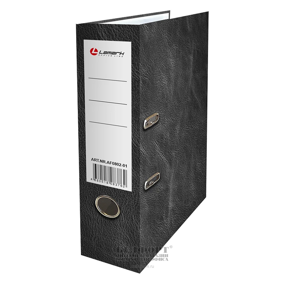 Папка-регистратор А4, арочный механизм, ширина корешка 75мм, картон ламинированный, черная, Lamark, "Кожа", внутреннее поле для записей