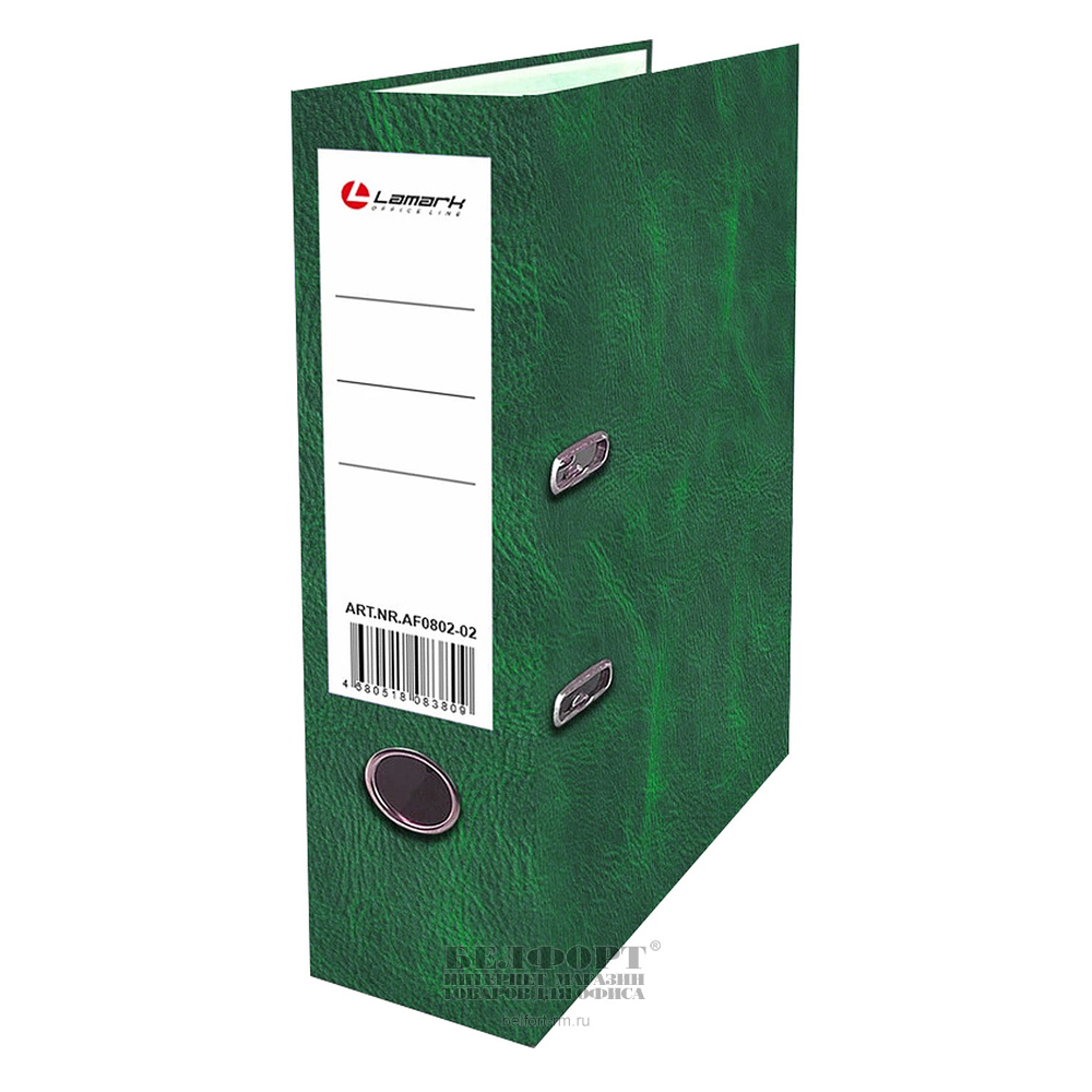Папка-регистратор А4, арочный механизм, ширина корешка 75мм, картон ламинированный, зеленая, Lamark, "Кожа", внутреннее поле для записей