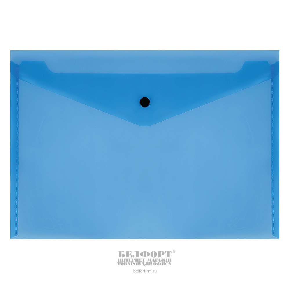 Папка-конверт на кнопке, А4, 0,15мм, СТАММ, прозрачная, синяя, 330мм*235мм, пластик