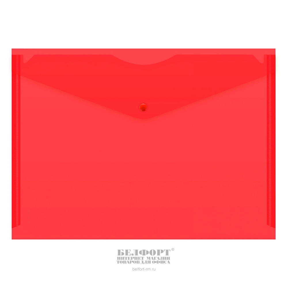 Папка-конверт на кнопке, А4, 0,15мм, Бюрократ, прозрачная, красная, 340мм*240мм, пластик