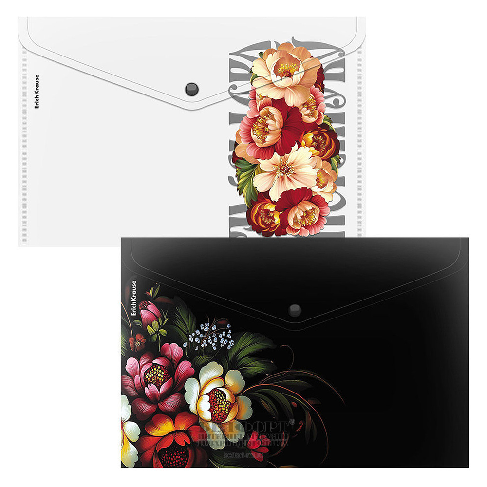 Папка-конверт на кнопке, А4, 0,16мм, Erich Krause, "Folk Motives", полупрозрачная, ассорти, 333мм*232мм, пластик