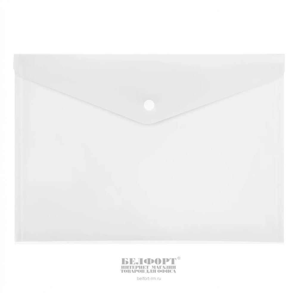 Папка-конверт на кнопке, А4, 0,15мм, Бюрократ, прозрачная, бесцветная, 340мм*240мм, пластик