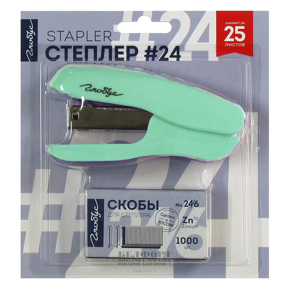 Степлер N24+скобы N24⁄6 до 25л, пластик, Глобус, корпус мятный, 50мм