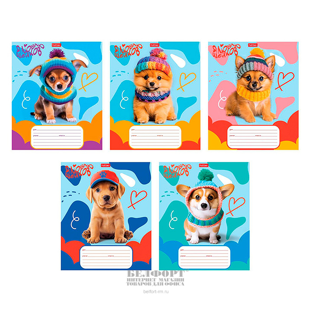 Тетрадь 12л, А5, клетка, Hatber, "Мы-песики!", обложка картон мелованный, внутр. блок офсет, на скрепке, ассорти, 60г⁄м², белизна 92%
