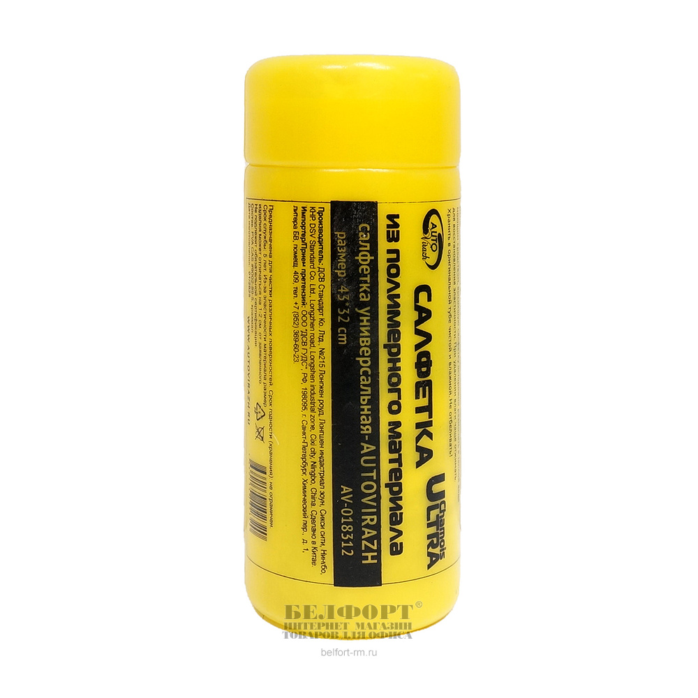 Салфетка для авто, AUTOVIRAZH, в тубе, желтая, замша искусственная, 43см*32см