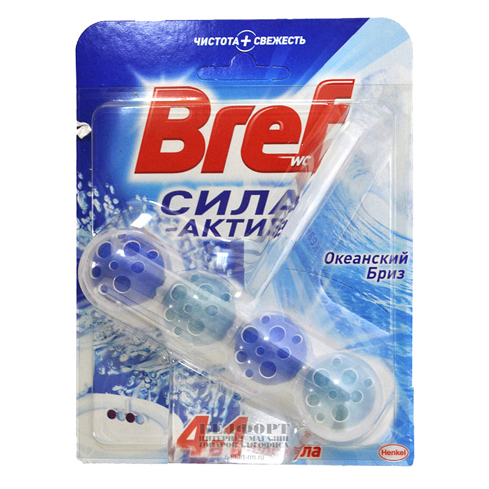 Блок гигиенический Bref, "Сила-Актив", "Океанский Бриз", для унитаза, 50г, шарики
