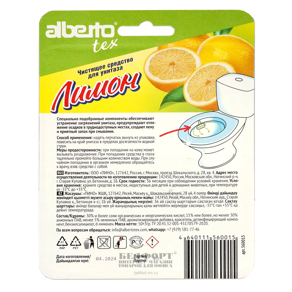 Блок гигиенический Alberto, "Лимон", для унитаза, 50г, шарики