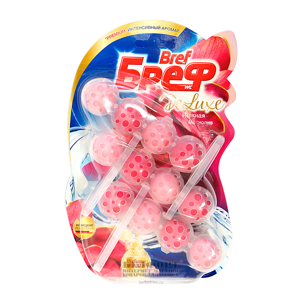 Блок гигиенический Bref, "De Luxe", "Нежная магнолия", для унитаза, 3*50г, шарики
