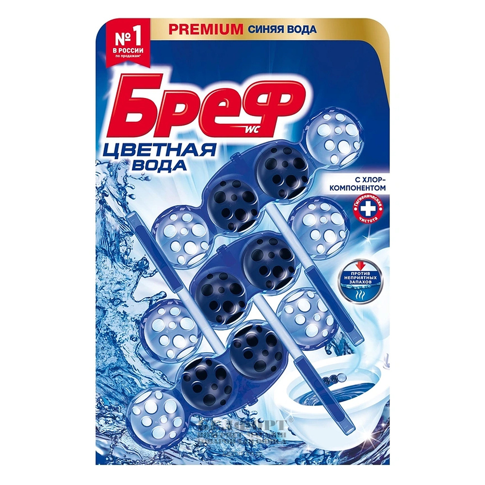 Добавить к сравнению221325Есть в наличии 7 уп.Блок гигиенический Bref, "Color Aktiv", "С хлор-компонентом", для унитаза, 2*50г, шарики