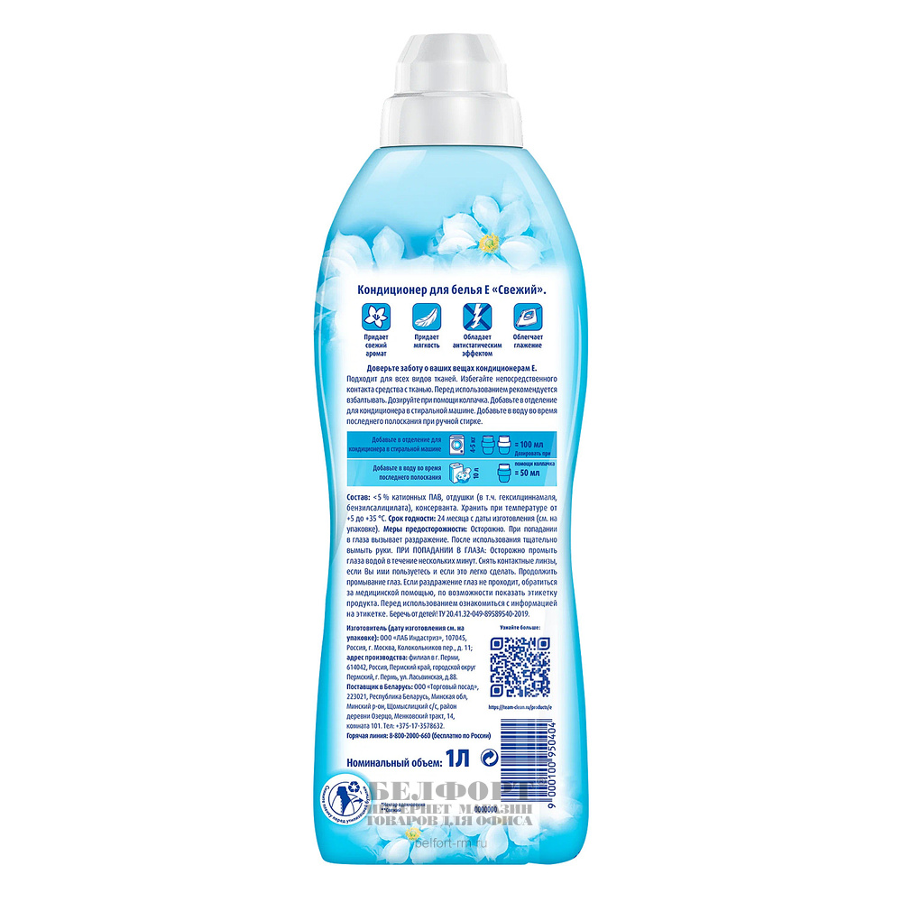 Кондиционер для белья E, "Свежесть", 1л, концентрат, флакон