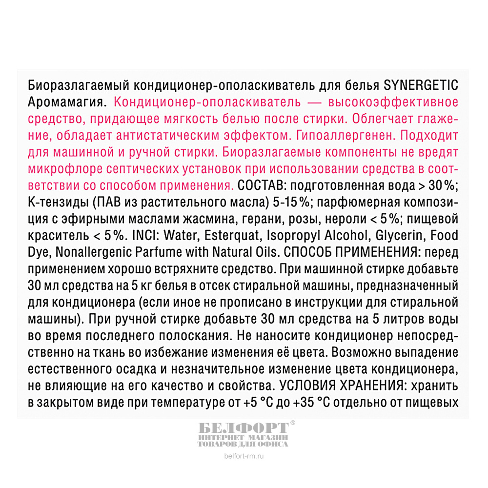 Кондиционер для белья Synergetic, "Аромамагия", 1л, биоразлагаемый, флакон