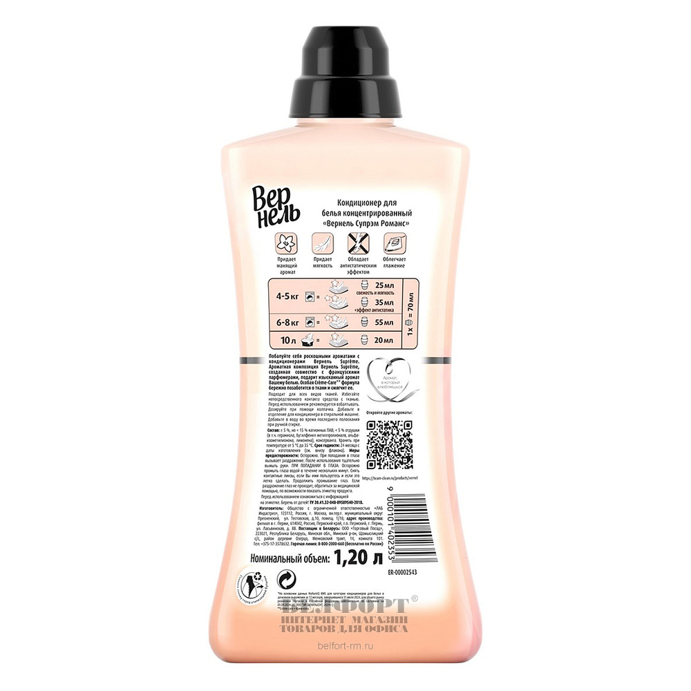 Кондиционер для белья Vernel, "Supreme", "Romance", 1,2л, концентрат, флакон