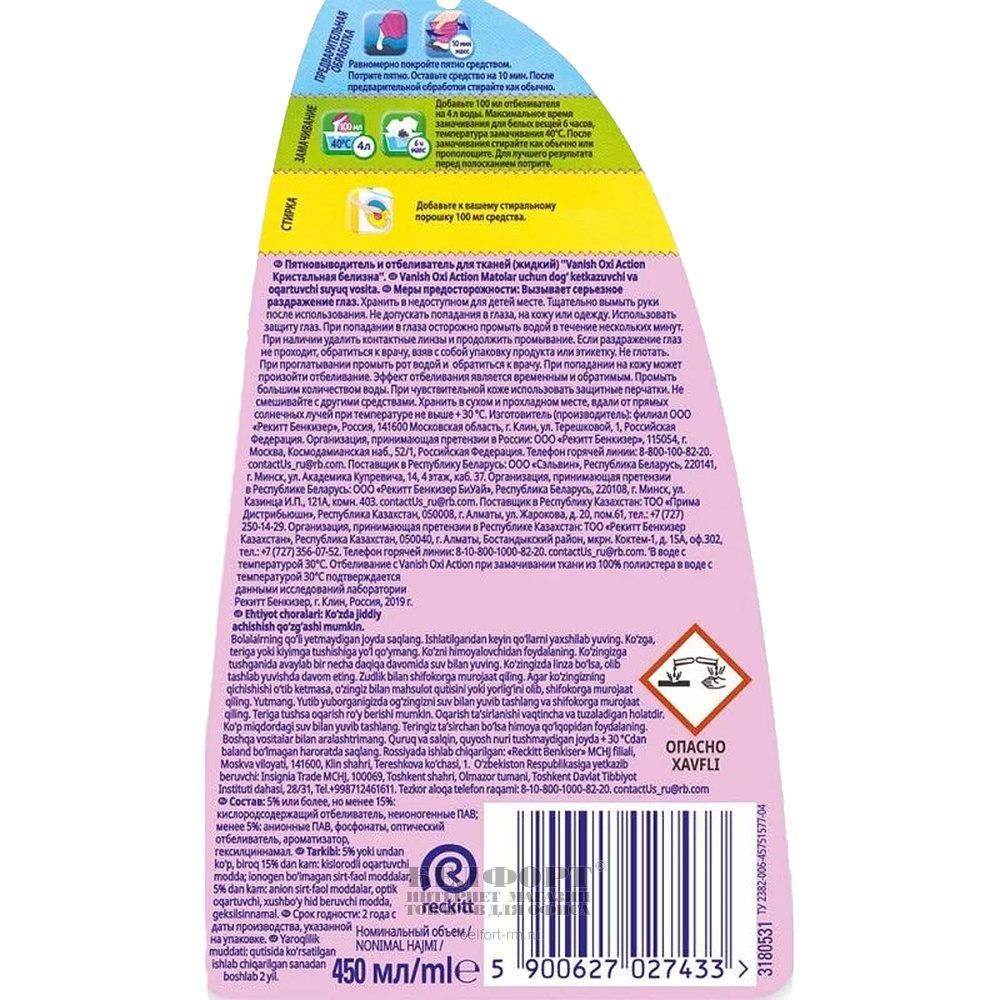 Пятновыводитель Vanish, "Oxi Action. Для белого", 450мл, флакон