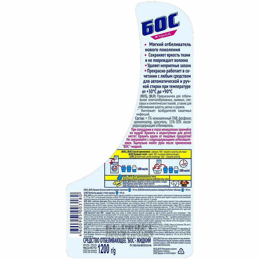 Отбеливатель БОС плюс, 1,2л, без хлора, кислородосодержащий, флакон