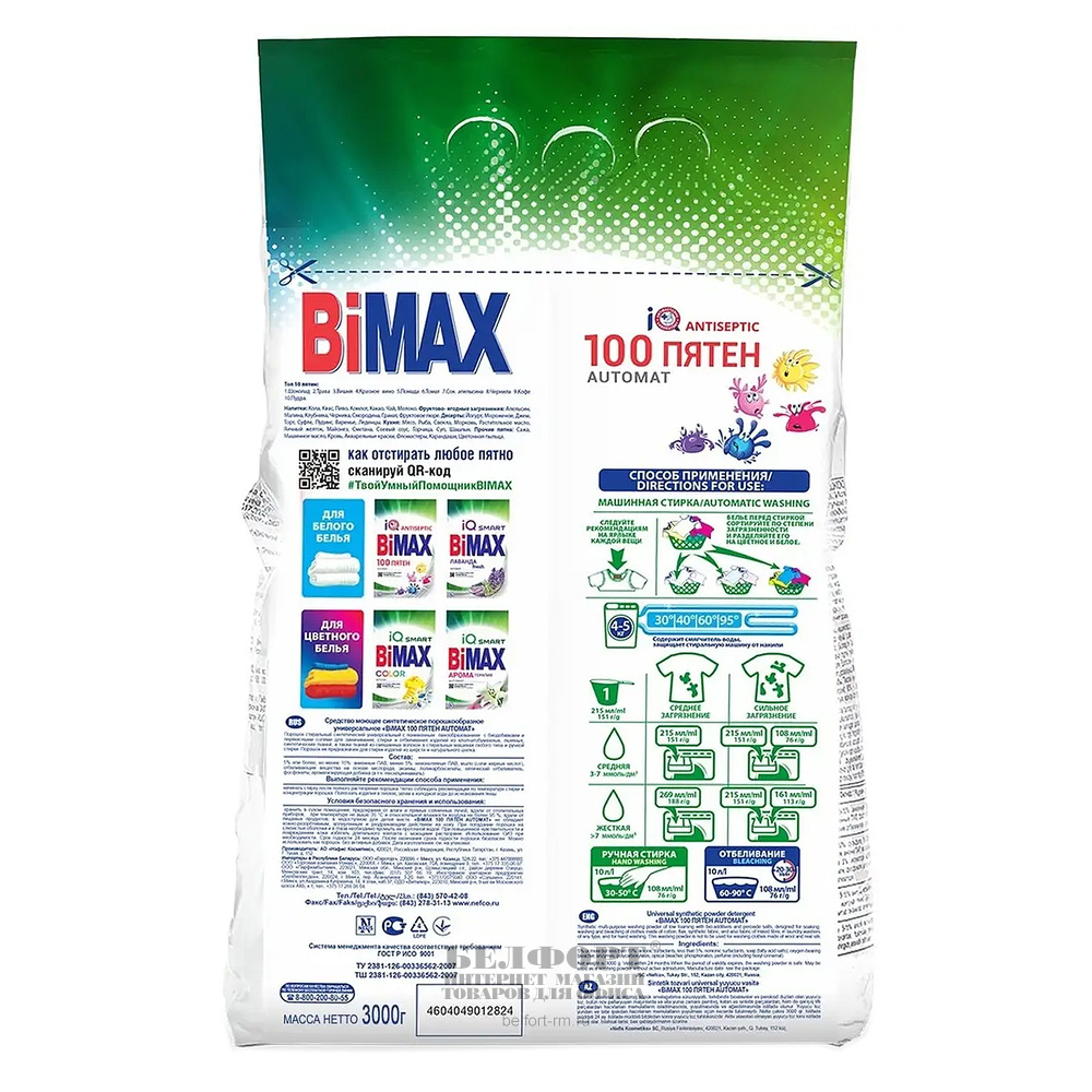 Порошок стиральный BiMAX, "100 пятен", 3кг, автомат, мягкая уп.
