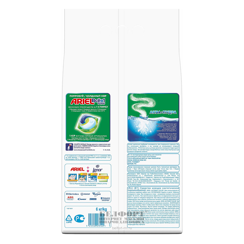 Добавить к сравнению170049Есть в наличии 3 уп.Порошок стиральный Ariel, "Аква-Пудра", "Горный родник", 6кг, автомат