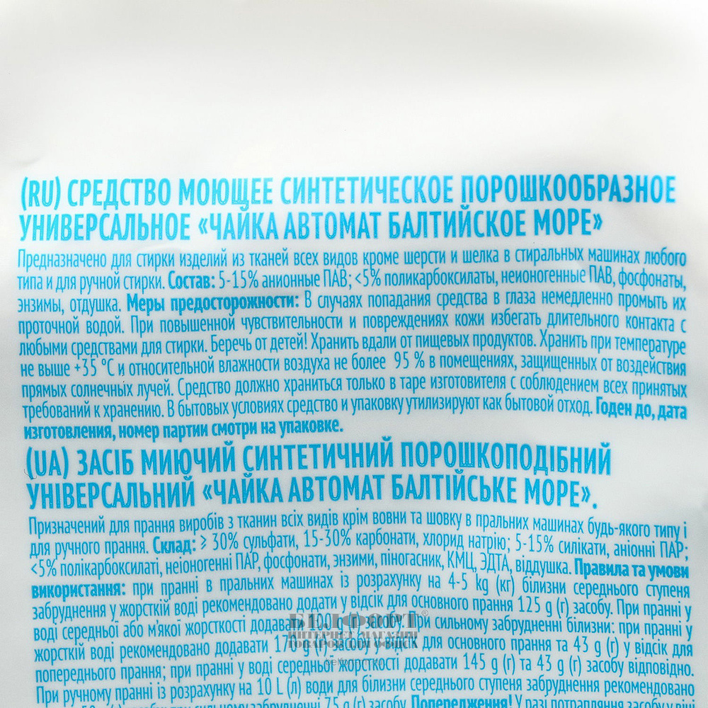 Порошок стиральный Чайка, "Балтийское Море", 15кг, для всех типов стирки