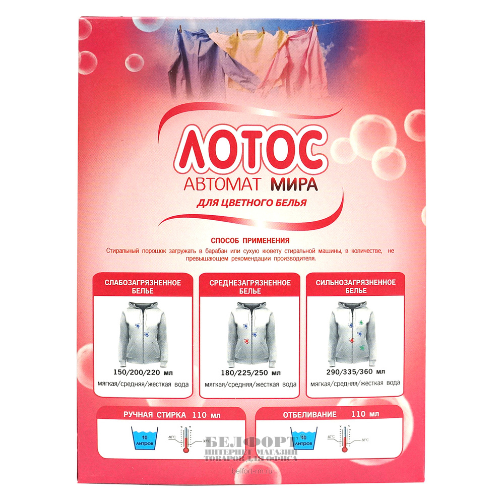 Добавить к сравнению236458Есть в наличии 2 уп.Порошок стиральный Лотос, "Color", 3кг, автомат