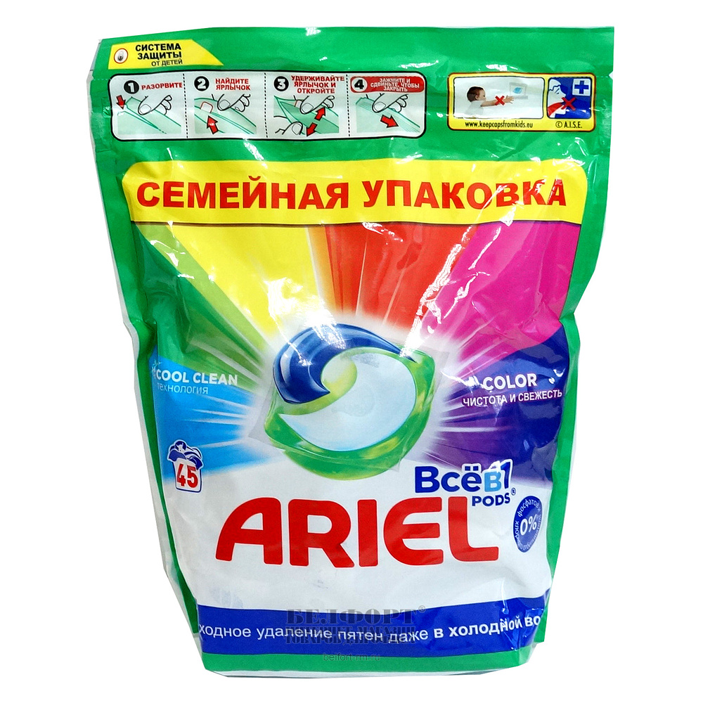 Капсулы для стирки Ariel, "Liquid Capsules Color", автомат, 45 капсул, мягкая уп.
