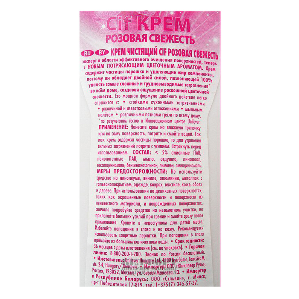 Чистящий крем СИФ, "Розовая свежесть", 500мл, флакон, флип-топ