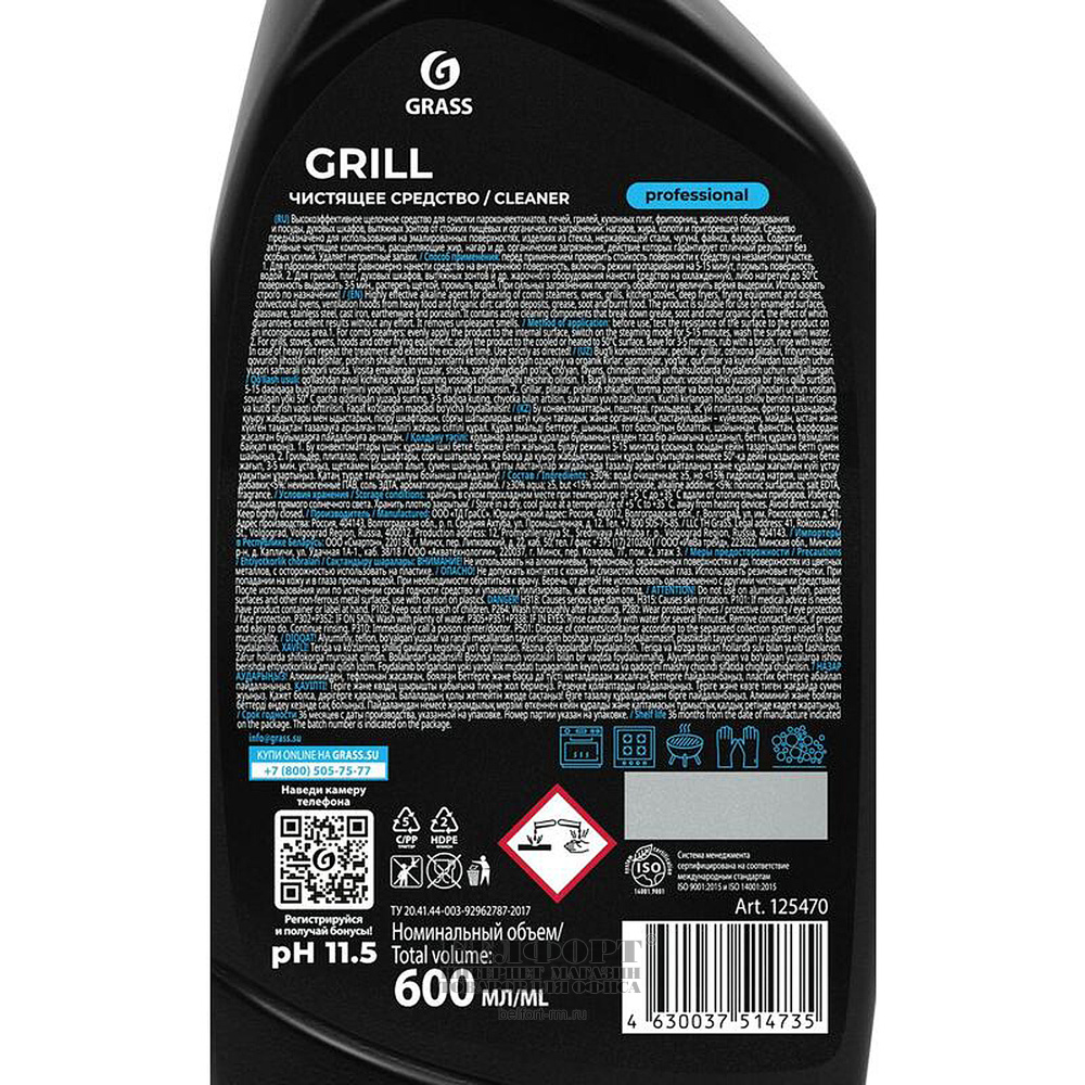 Чистящее средство Grass, "Grill. Professional ", 600мл, щелочное, триггер, флакон