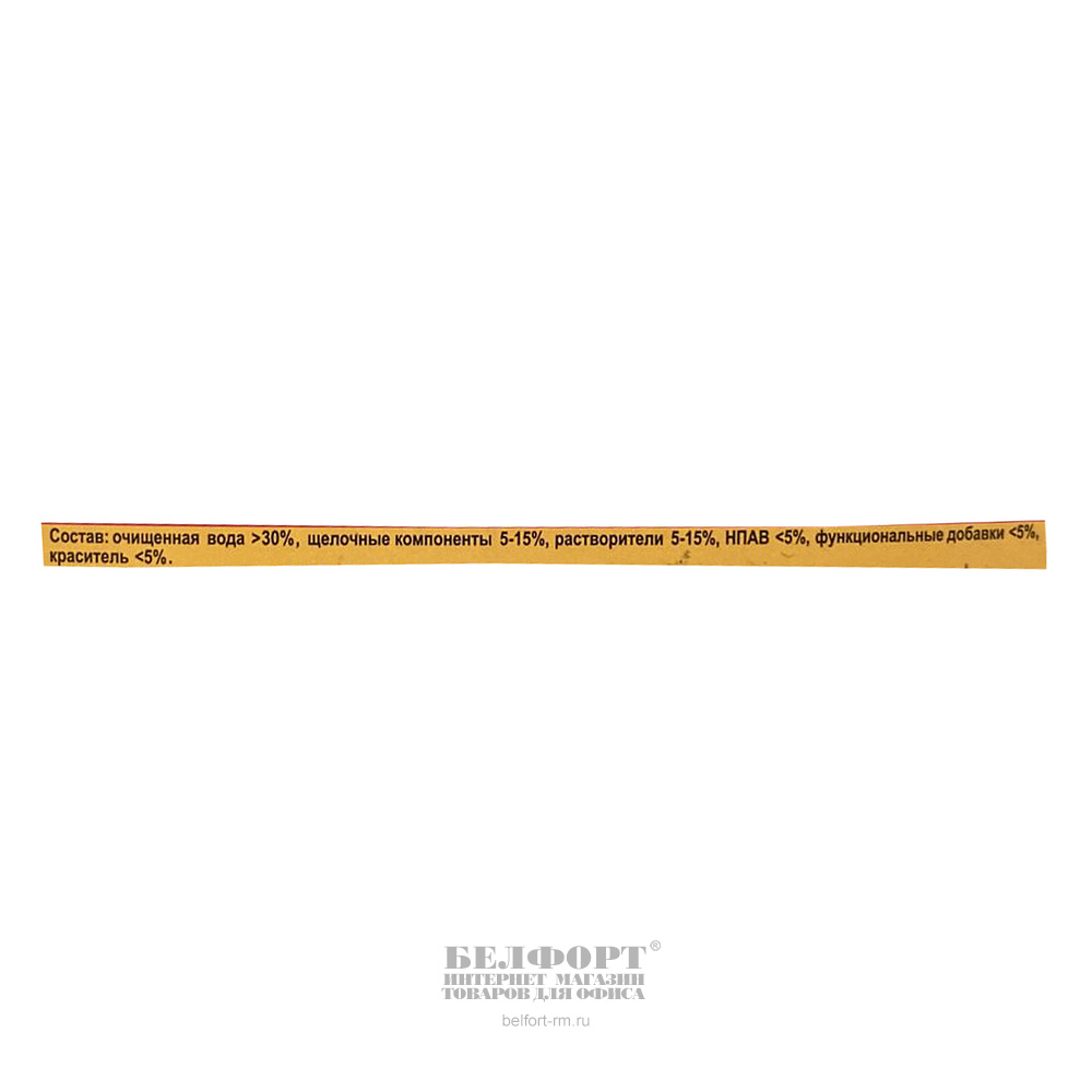 Очищенная вода, НПАВ <5%, щелочные (алкальные) компоненты 5%-15%, растворители, функциональные компоненты, краситель.