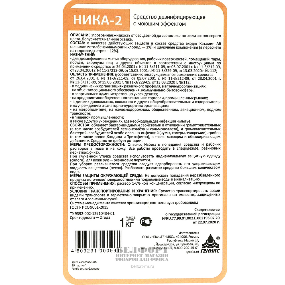 Средство дезинфицирующее Ника, "Ника-2", 5л, канистра
