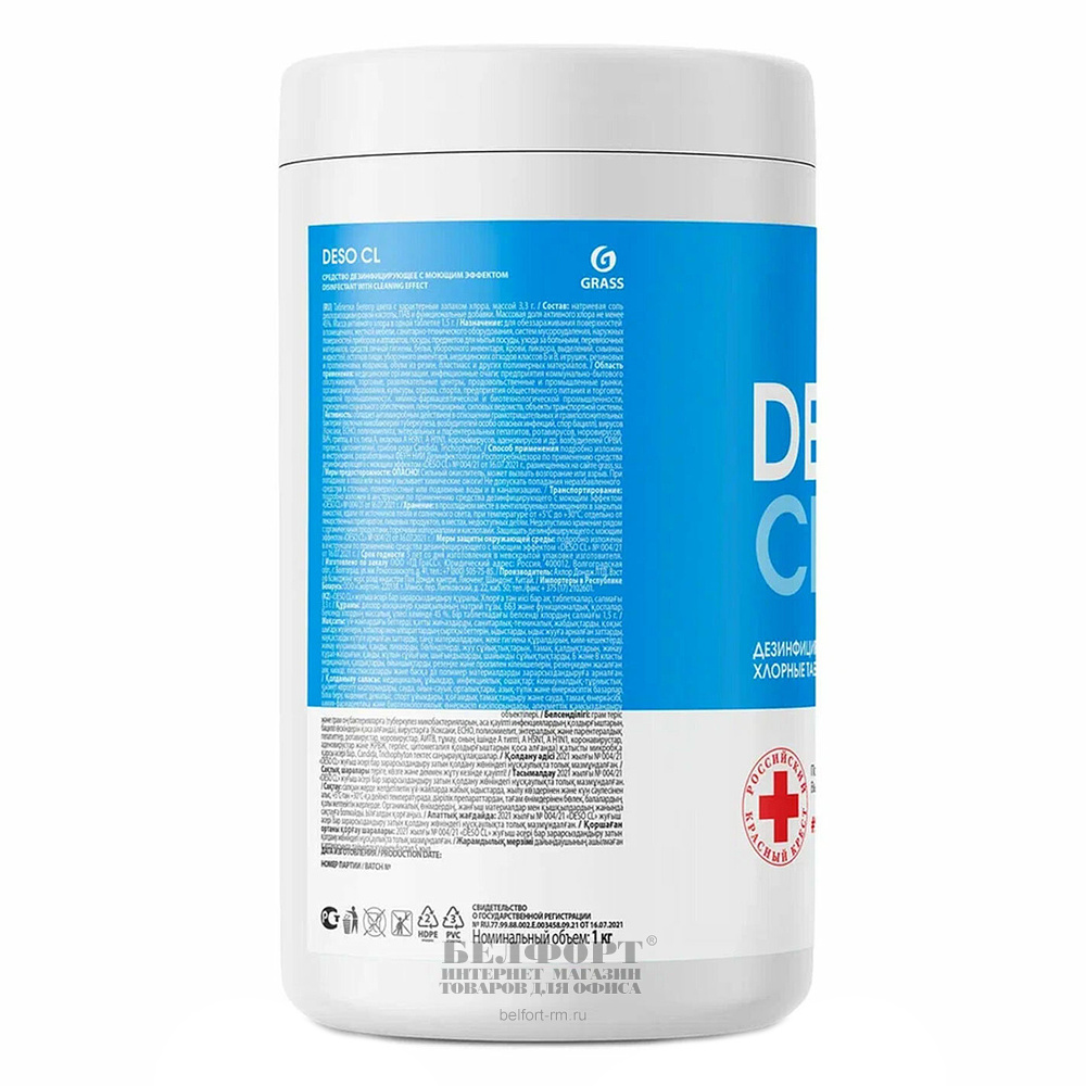 Средство дезинфицирующее таблетки 300 шт, Grass, "Deso CL", 1кг, пластик. банка