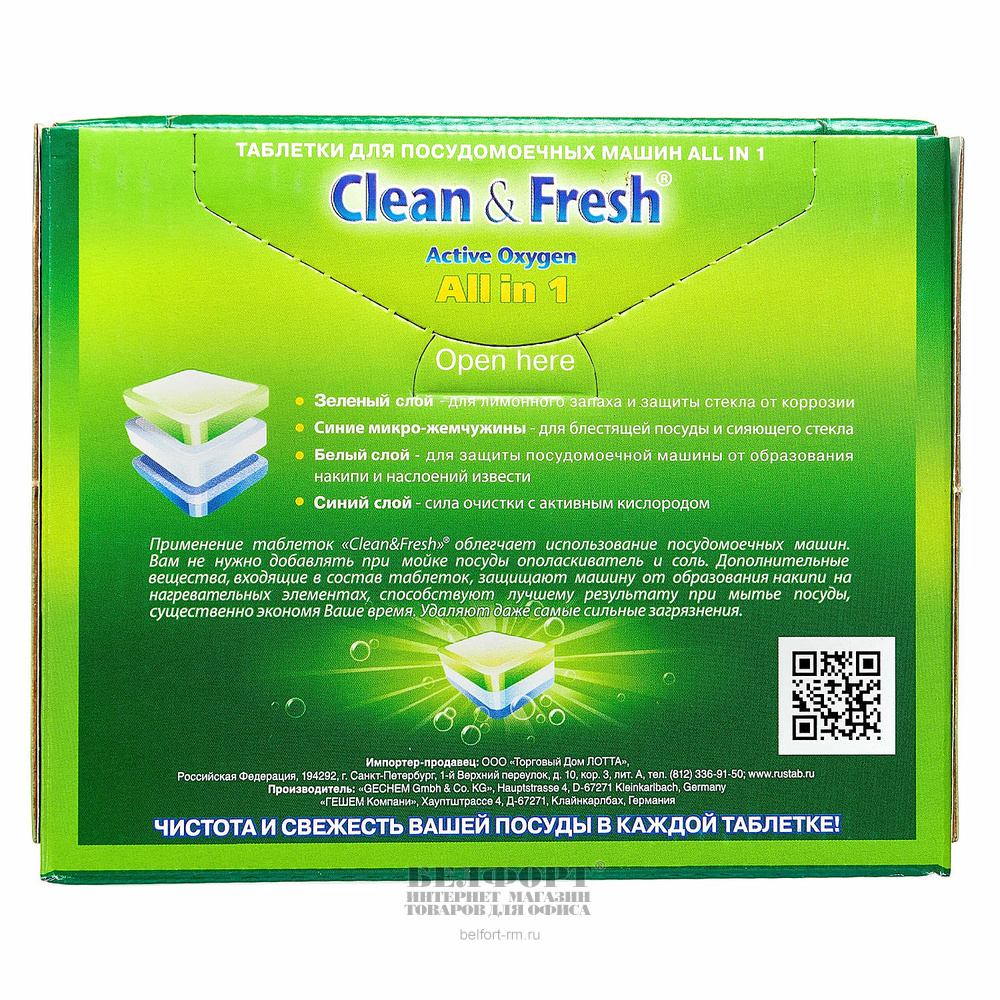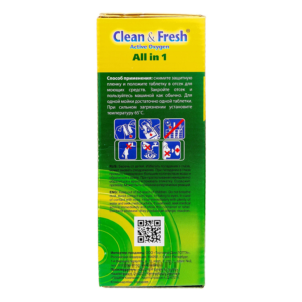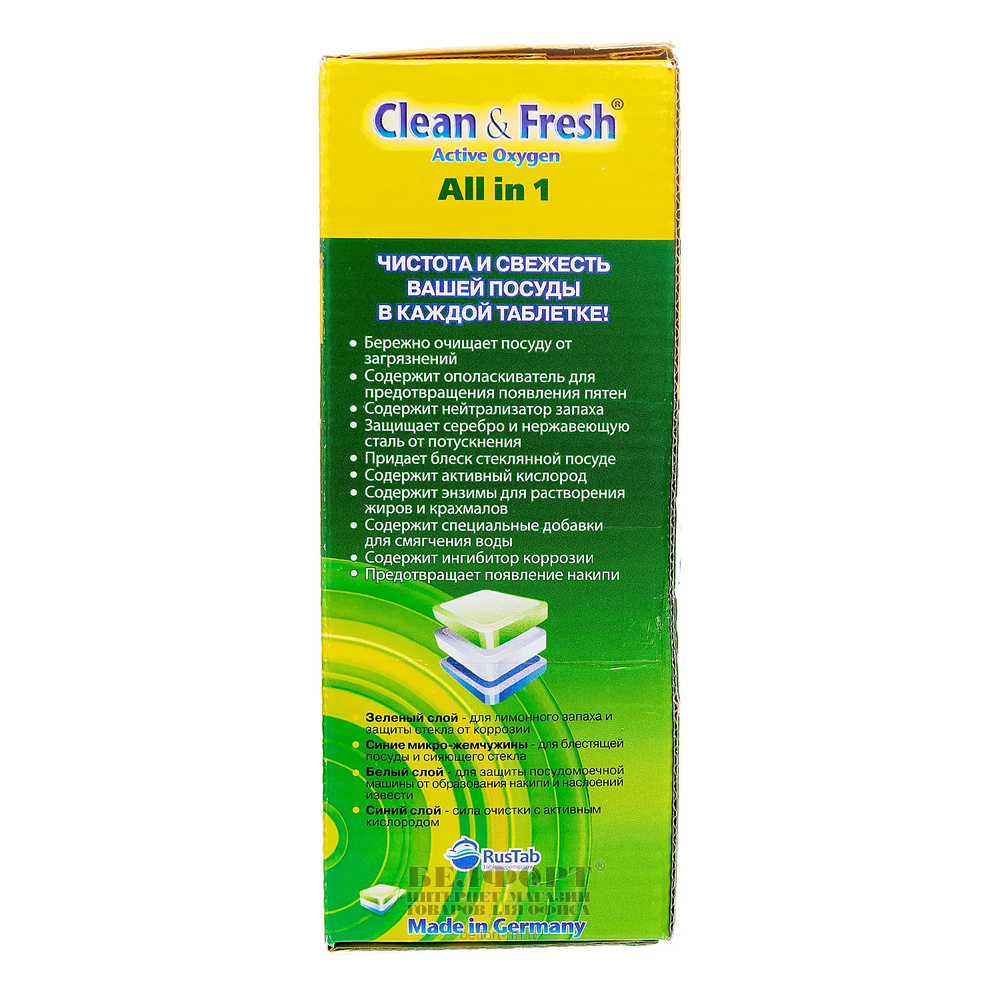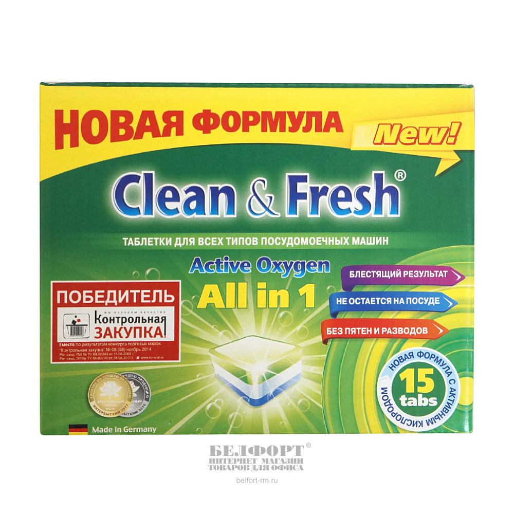 Таблетки 15шт, Clean & Fresh, 300г, для посудомоечных машин