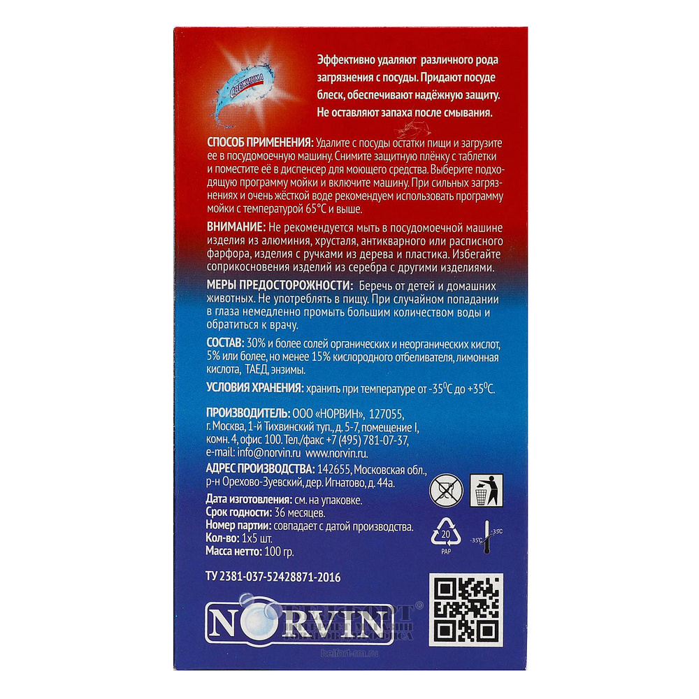 Таблетки 5шт, Свежинка, 100г, для посудомоечных машин