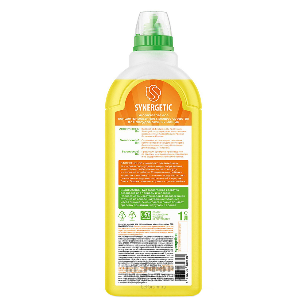 Средство моющее для посуды Synergetic, 1л, для посудомоечных машин, биоразлагаемое, без запаха