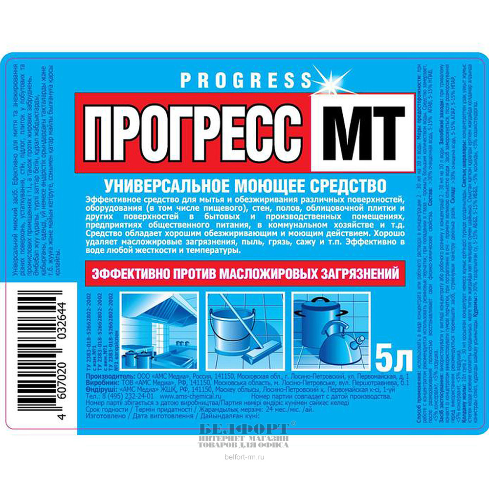 Универсальное моющее средство Прогресс, 5л, канистра, с повышенным жироудалением, без хлора