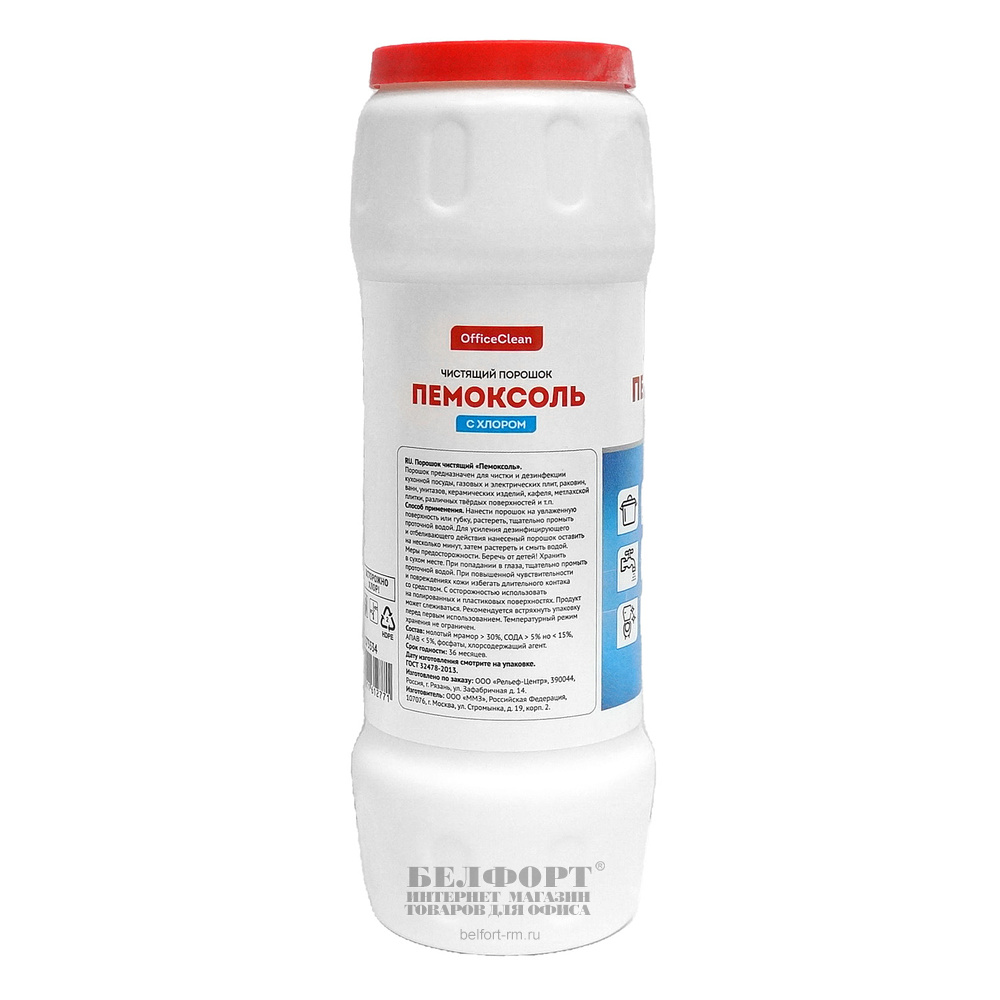 Чистящий порошок OfficeClean, "Пемоксоль", 400г, пластик. банка, флип-топ, хлор