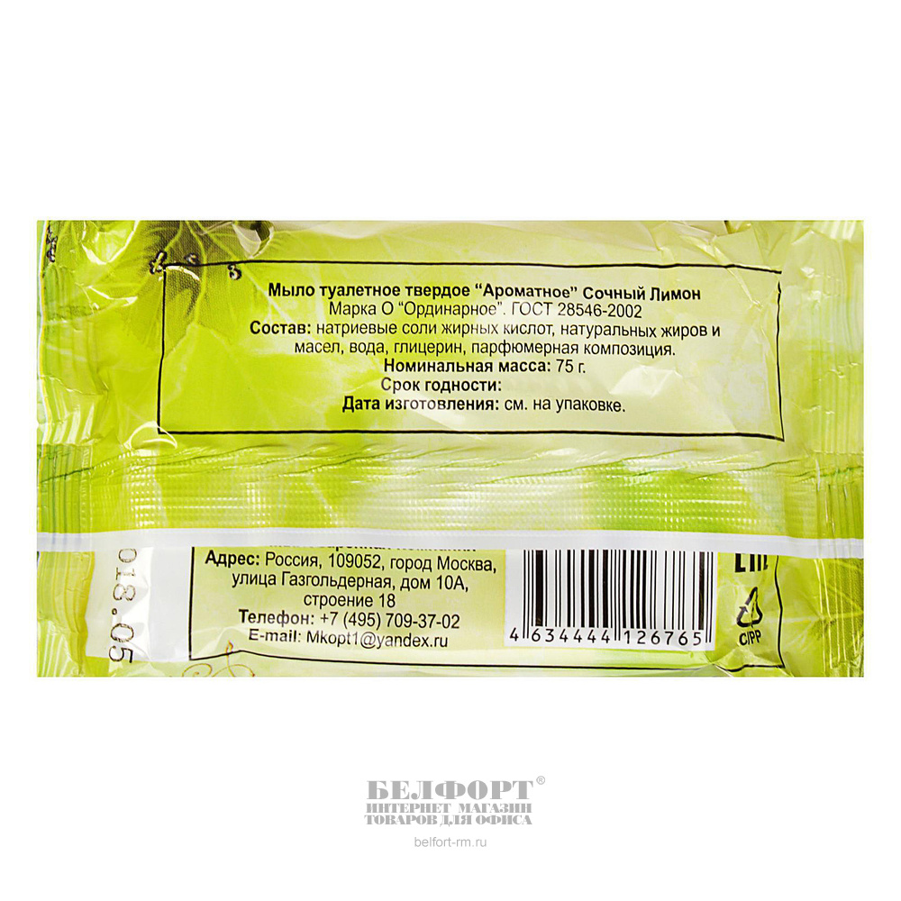 Мыло туалетное "Ароматное" Сочный лимон, 75 гр эффективно очищает кожу, не травмирует и не сушит ее.