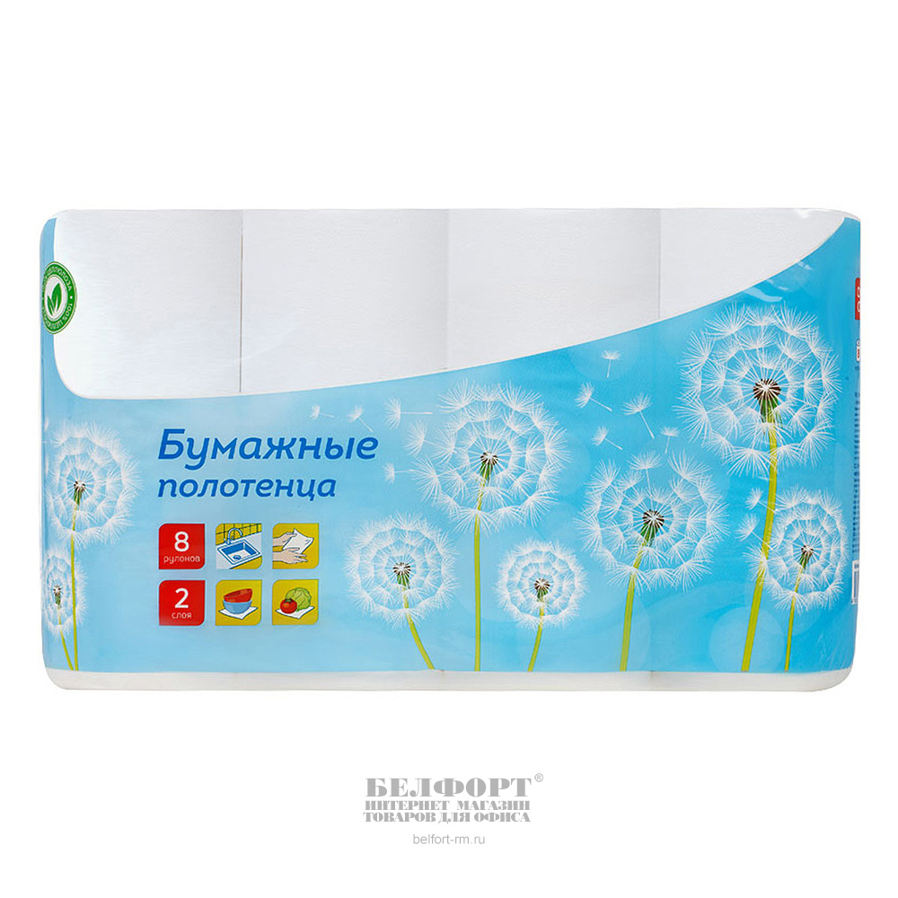 Полотенце бумажное 2-слойн., OfficeClean, 12м, 23см*21см, 8шт, с втулкой, с тиснением, перфорация есть